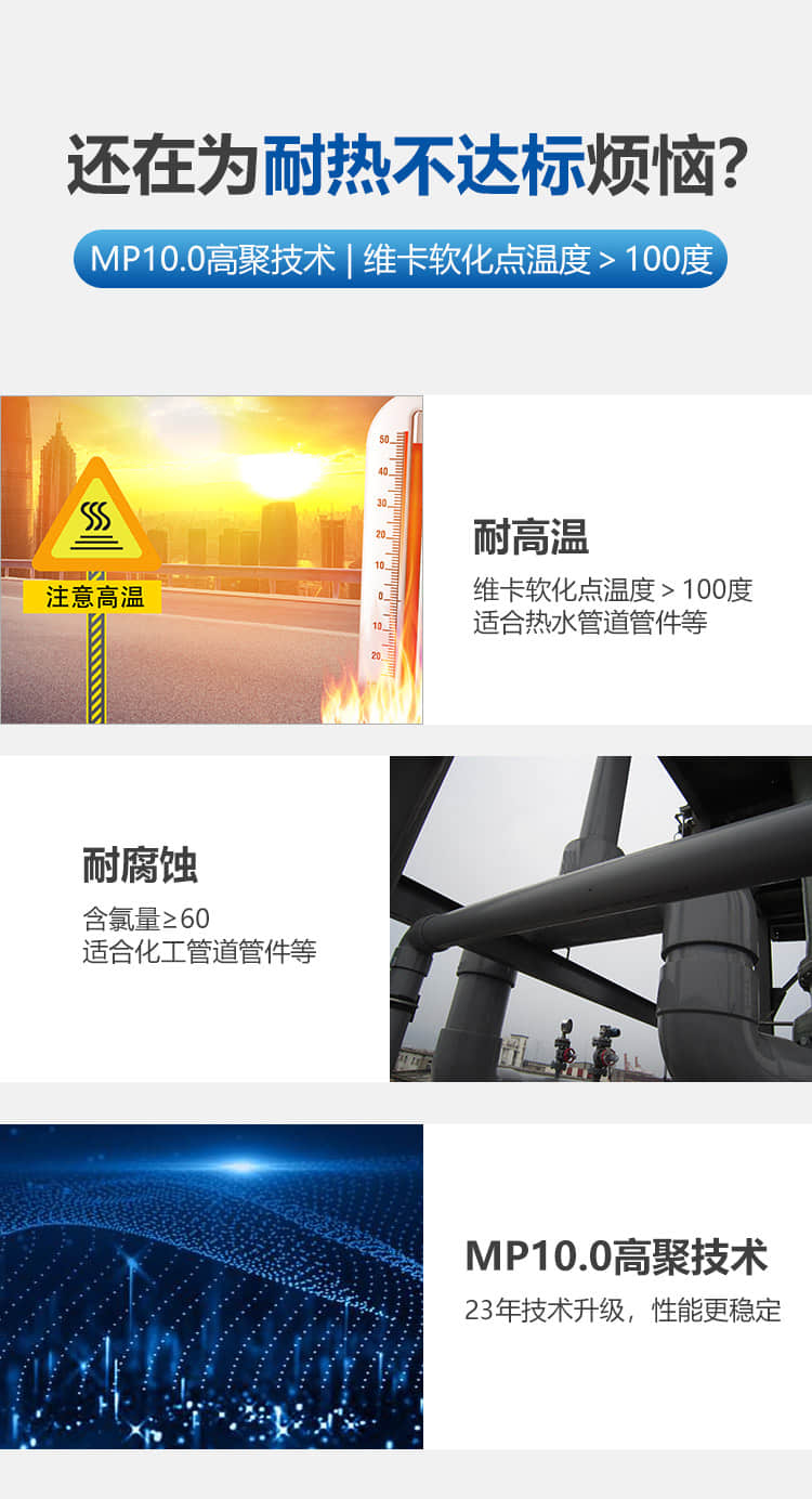 經(jīng)測試金立達CPVC維卡軟化點溫度大于100度,可廣泛試用于熱水管件閥門及管子、消防管子及接頭、化工污水處理等管接頭閥門等等,其良好的耐熱性能、優(yōu)異的耐腐蝕能力,深受廣大客戶一致好評!